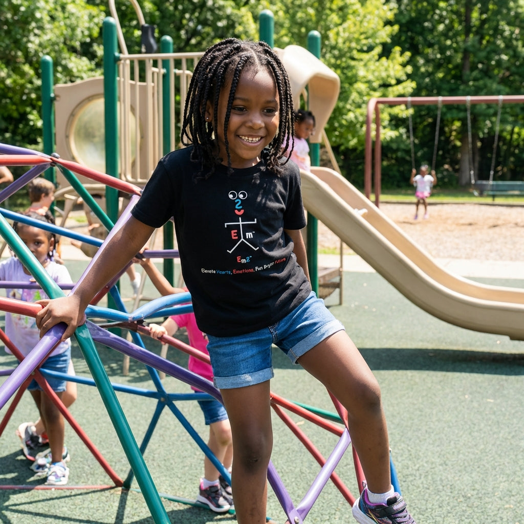 EM2 Emotion Mascot Logo "Elevate Hearts, Emotions, Fun Bright Future" 100% Cotton Unisex Short Sleeve Black T-Shirt